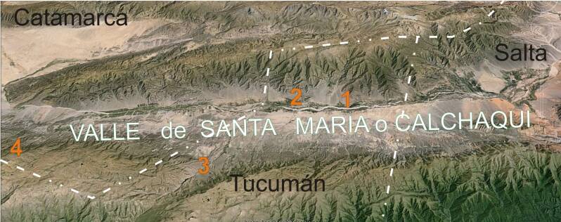 El Valle de Santa María o Calchaquí, se extiende a lo largo de 100 km y posee un ancho promedi de 20 km, abarcando las provincias de Catamarca, Tucumán y Salta. Desde mediados del 1500 este valle fue denominado Calchaquí debido a que el cacique Juan Calchaquí logró confederar a todas las poblaciones que allí se encontraban. Tras la derrota militar de la última campaña española en 1665, cuando los indios Quilmes y Amaichas son trasladados, el valle se convirtió en una enorme cantera de sitios arqueológicos.