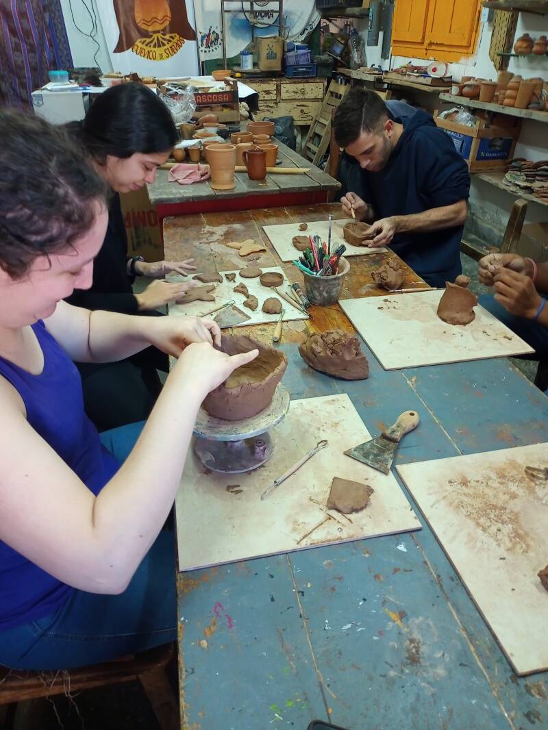 Luego de esta introducción pasamos manos a la arcilla! Nos mostrará las materias primas utilizar, los herramientas de factura y diseño y las técnicas tradicionales con las cuales comenzaremos a trabajar nuestra primer pieza. Terminada la pieza nos despedimos y te llevo a tu alojamiento con tu pieza ya terminada sabiendo que ... ¡ya sos alfarer@ oficial!